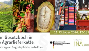 In our event series, we demonstrate that implementing due diligence obligations is feasible for everyone. This virtual discussion format actively supports you in complying with regulatory requirements. We provide you with various practical tools and guidelines focused on the agricultural and food industry. Additionally, we keep an eye on EU legislative processes and international discussions, report on recent developments and engage directly with the relevant authorities. A key component of the format is incorporating the perspective of people and companies in partner countries.